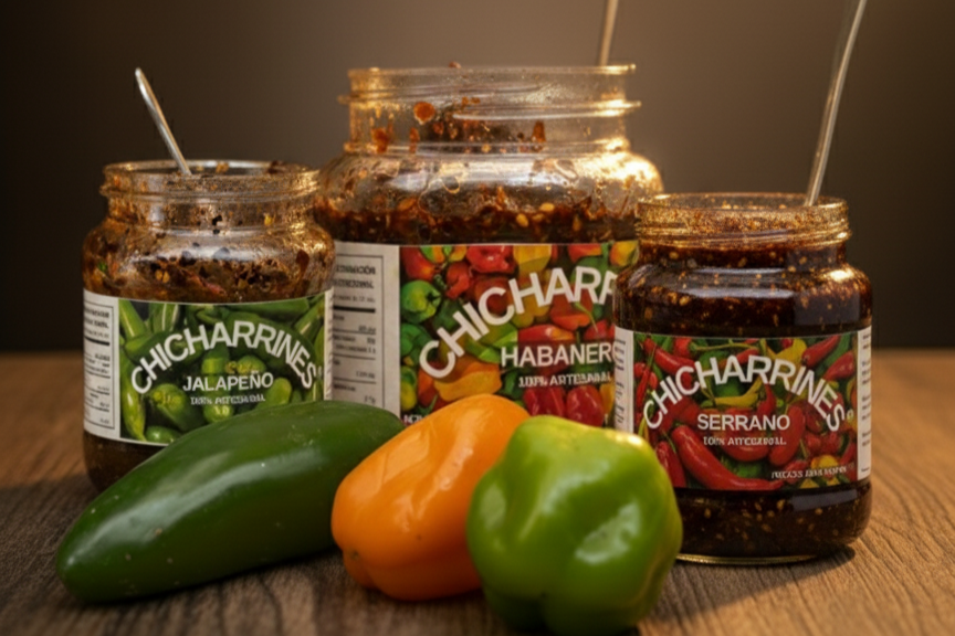 Conocido comercialmente como "Chicharron de chile" por su textura crocante.
