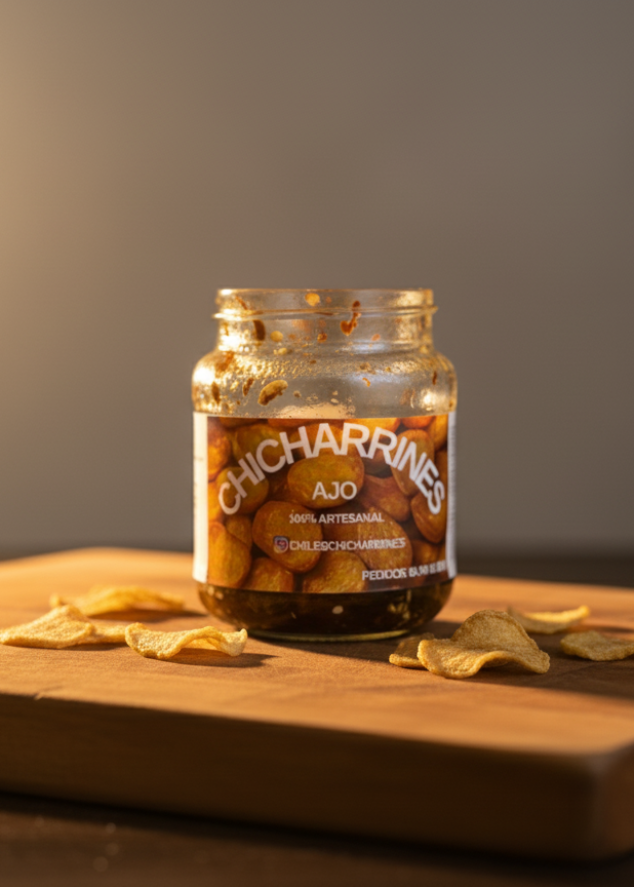 Ajo en rodajas, con el sabor de chicharrines. Ajo, sal, aceite de oliva.